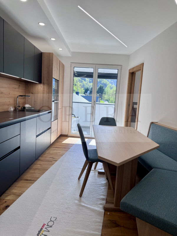 Prato Isarco: nuovo bilocale con terrazza, arredato, garage doppio compreso, pronta consegna.