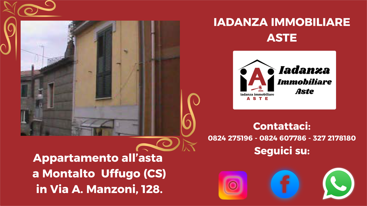 Appartamento trilocale all'asta a Montalto Uffugo (CS), Frazione Taverna, Via Alessandro Manzoni n. 128.