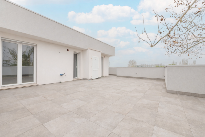 Tutte le camere hanno accesso diretto alla terrazza, garantendo continuità tra interno ed esterno e una luminosità naturale costante.