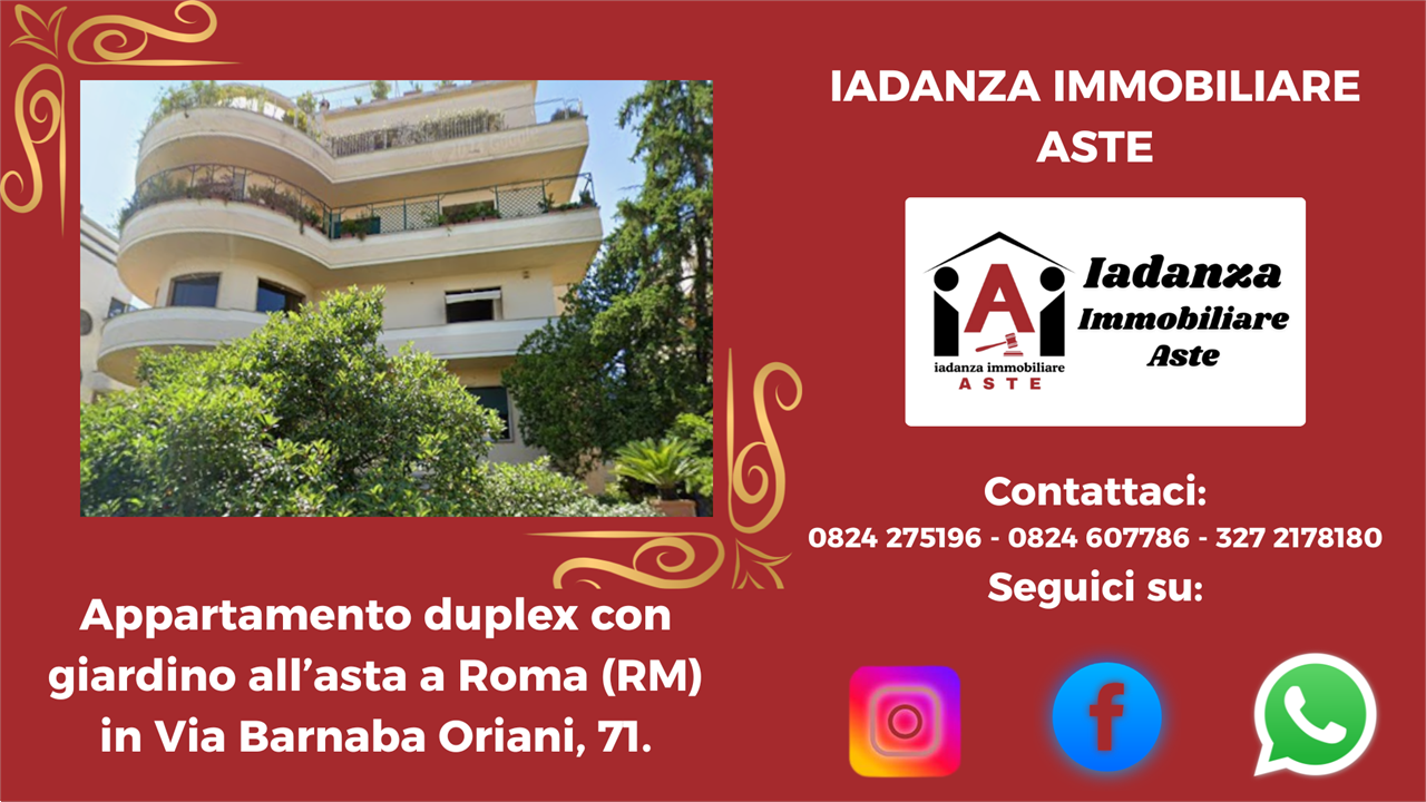 Appartamento duplex con cantina, garage e giardino privato all'asta a Roma (RM) in Via Barnaba Oriani,71.