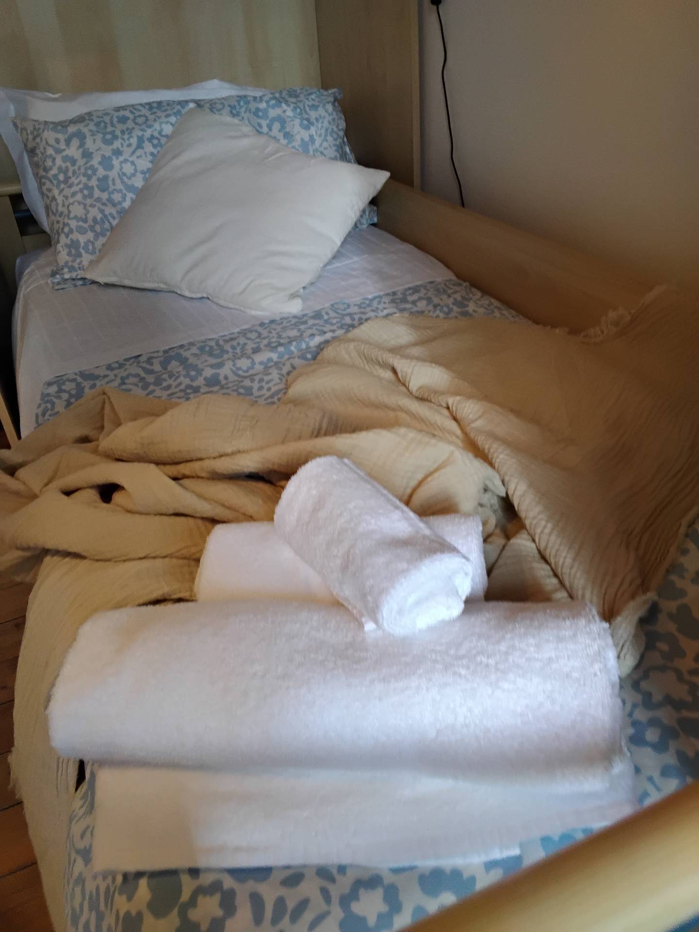 La casa si sviluppa su 3 livelli, al piano terra la cucina ed una delle 3 camere ( la singola), al piano primo le altre due ampie camere doppie, composte ognuna da 2 letti singoli. Tutte le camere sono arredate a nuovo e completate da ampi armadi e scrivanie, ideali per garantire il massimo comfort e la privacy di ogni inquilino. La casa è ideale per ospitare un totale di cinque persone.