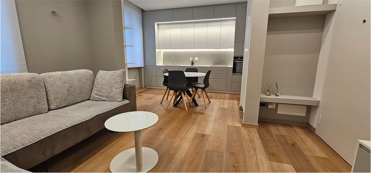 Proponiamo in affitto un elegante monolocale con travi a vista e ascensore con accesso diretto all'interno dell'appartamento.
