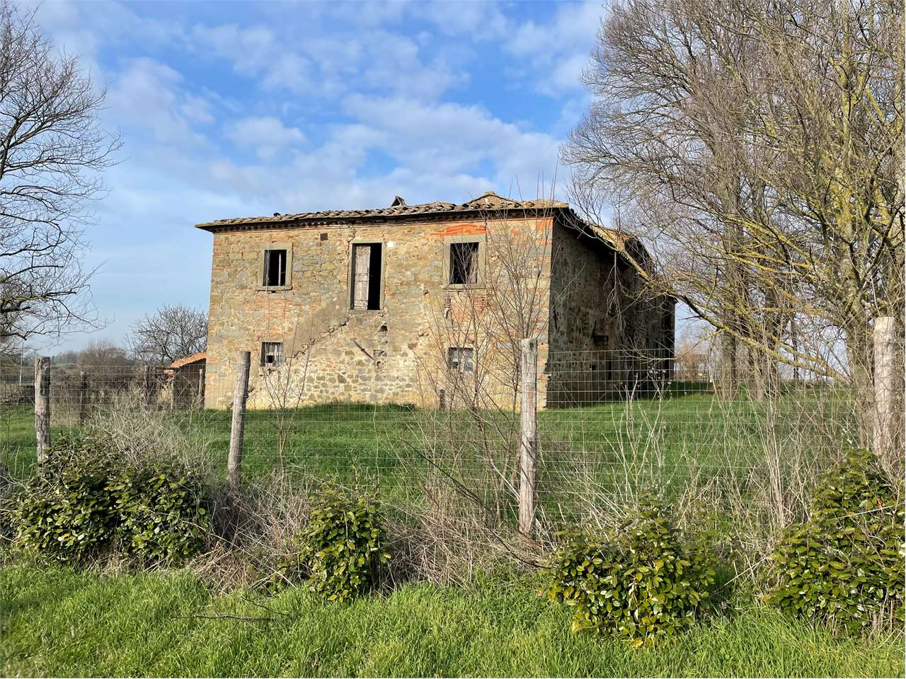 Gazzetta Immobiliare 10401987 – Riferimento Agenzia 1394 – Immerso nelle dolci colline sottostanti Cortona proponiamo in vendita Casale completamente da ristrutturare completo di vari annessi e terreni di proprietà esclusiva.