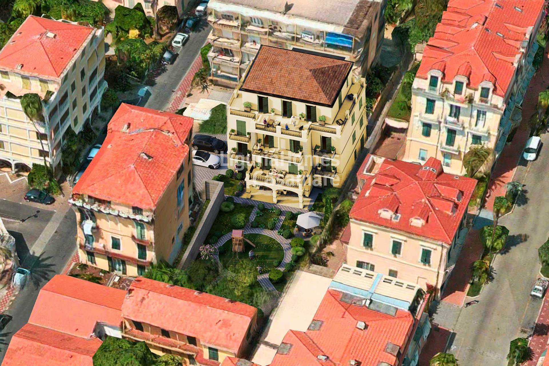 Gazzetta Immobiliare 10521267 – Riferimento Agenzia 3T98 – Villa Nouveau, Bordighera, vendita centralissimo appartamento Trilocale con giardino privato in palazzina in corso di costruzione con classe energetica A4.