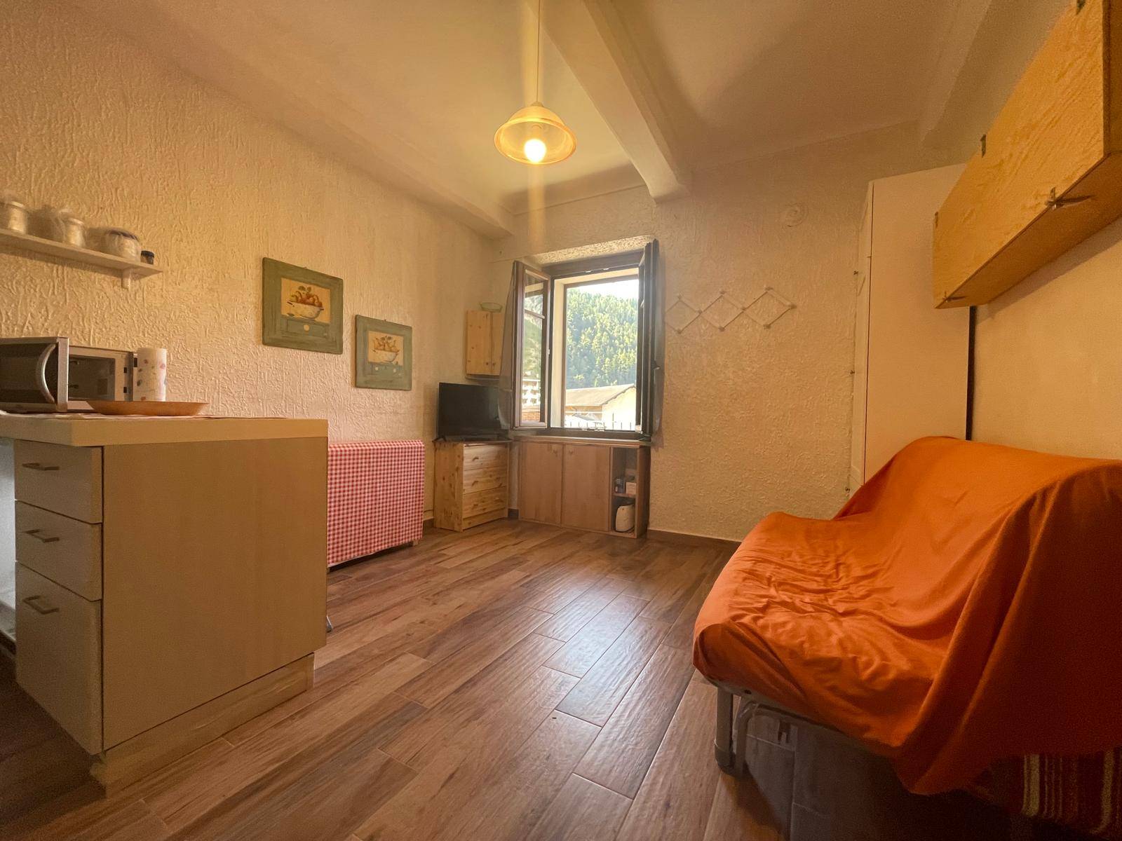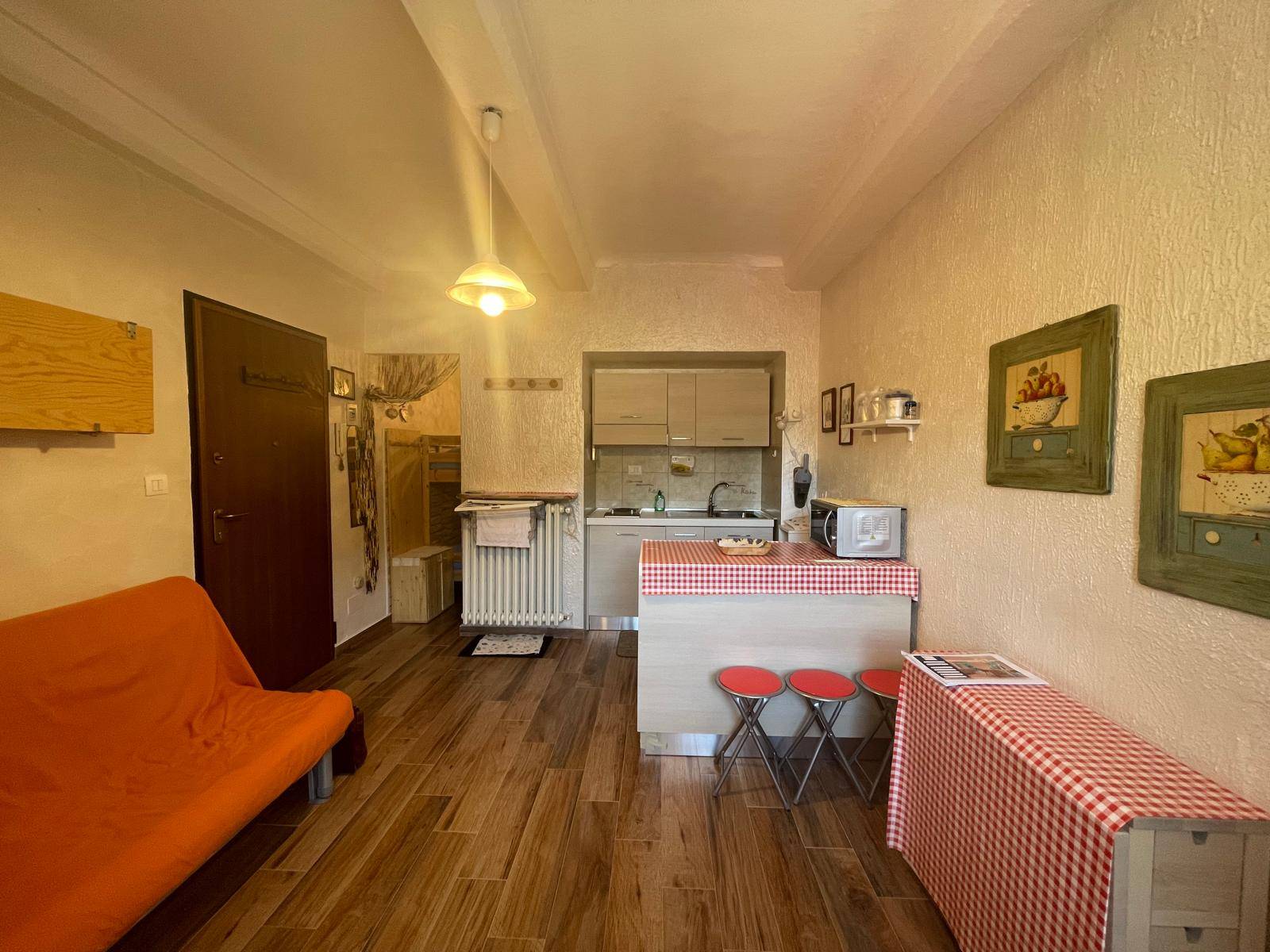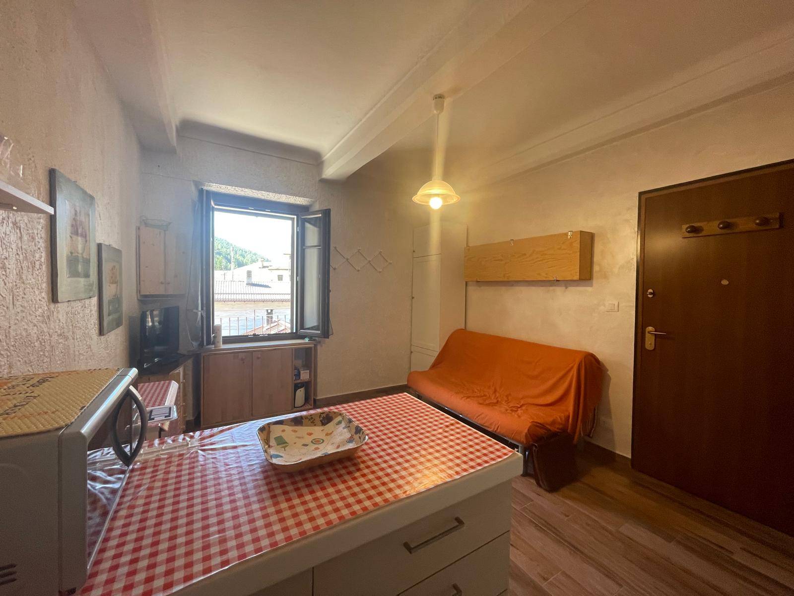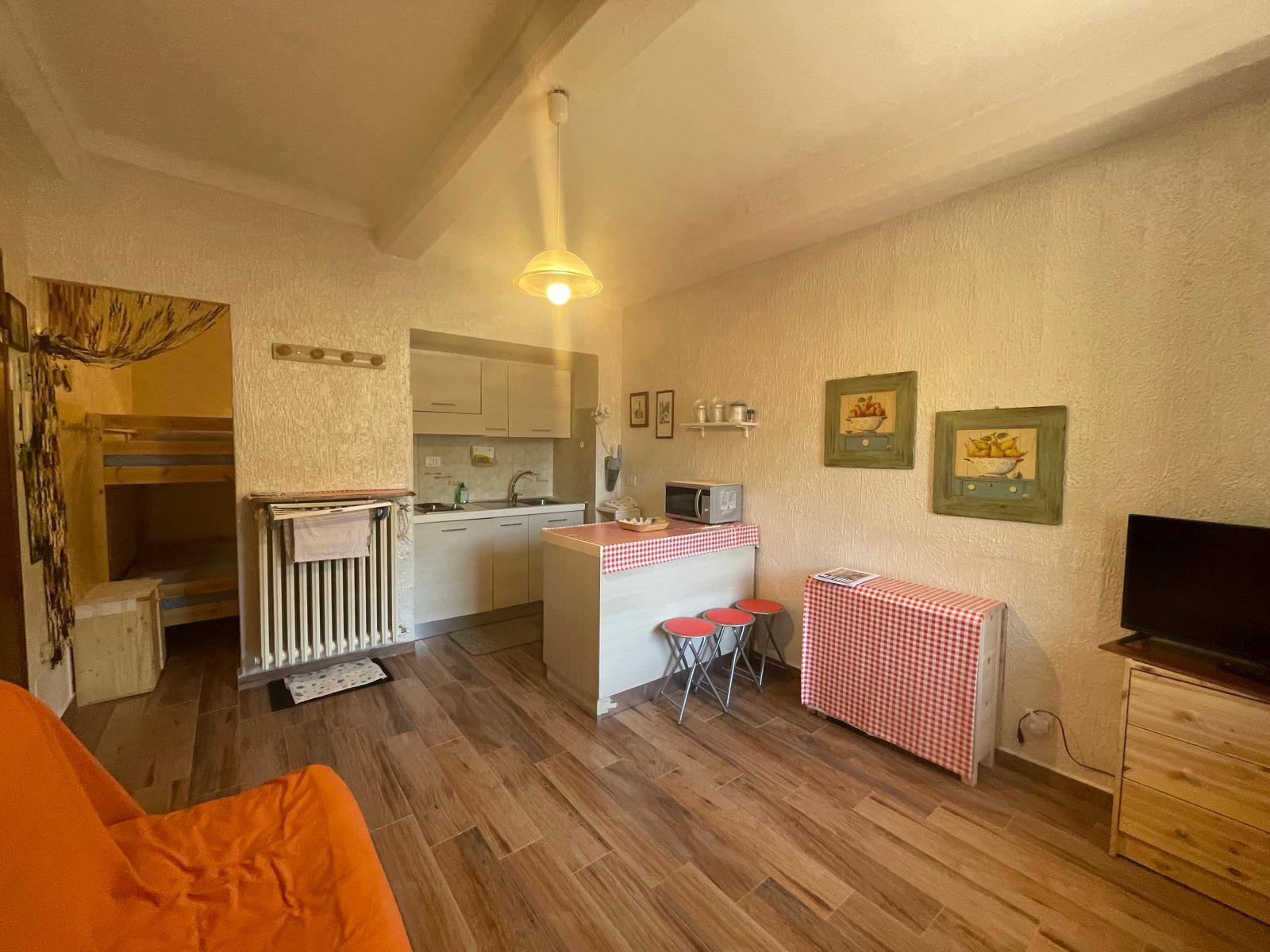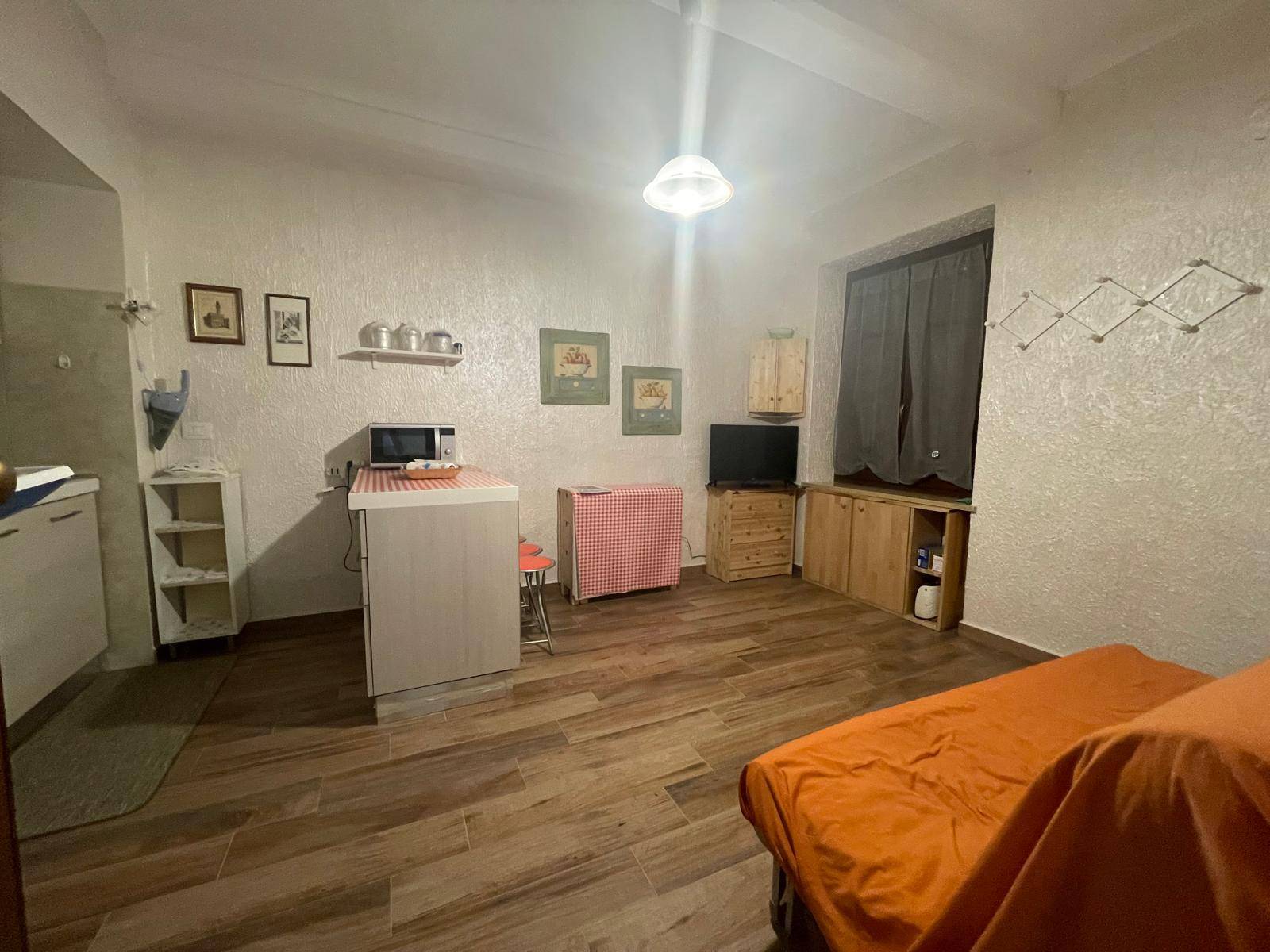 ambiente unico con cucina a vista e divano letto, disimpegn... Vedi di più