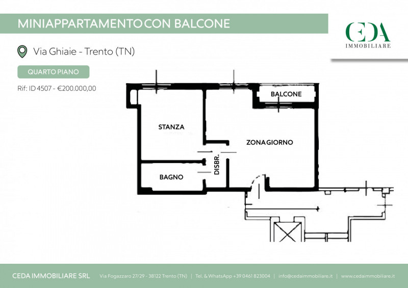Gazzetta Immobiliare 10906579 – Riferimento Agenzia 4507 – Proponiamo in vendita a Trento, in Via delle Ghiaie, un luminoso appartamento situato a quarto piano e servito da ascensore.