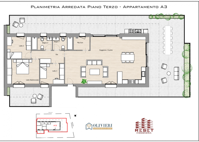 Esso si estenderà su un'ampia metratura di circa 235 mq che prenderà tutto l'ultimo piano.