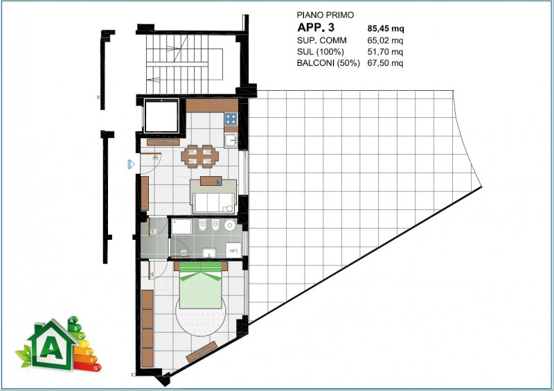 Gazzetta Immobiliare 10921287 – Riferimento Agenzia A3810 – A3810 Vendiamo appartamento nuovo classe A4 , in stabile in fase di ristrutturazione (scheda appartamento n° 3 ) Mq. 85,45 + terrazzo composto da: ingresso, soggiorno con angolo cottura , una camer... Vedi di più