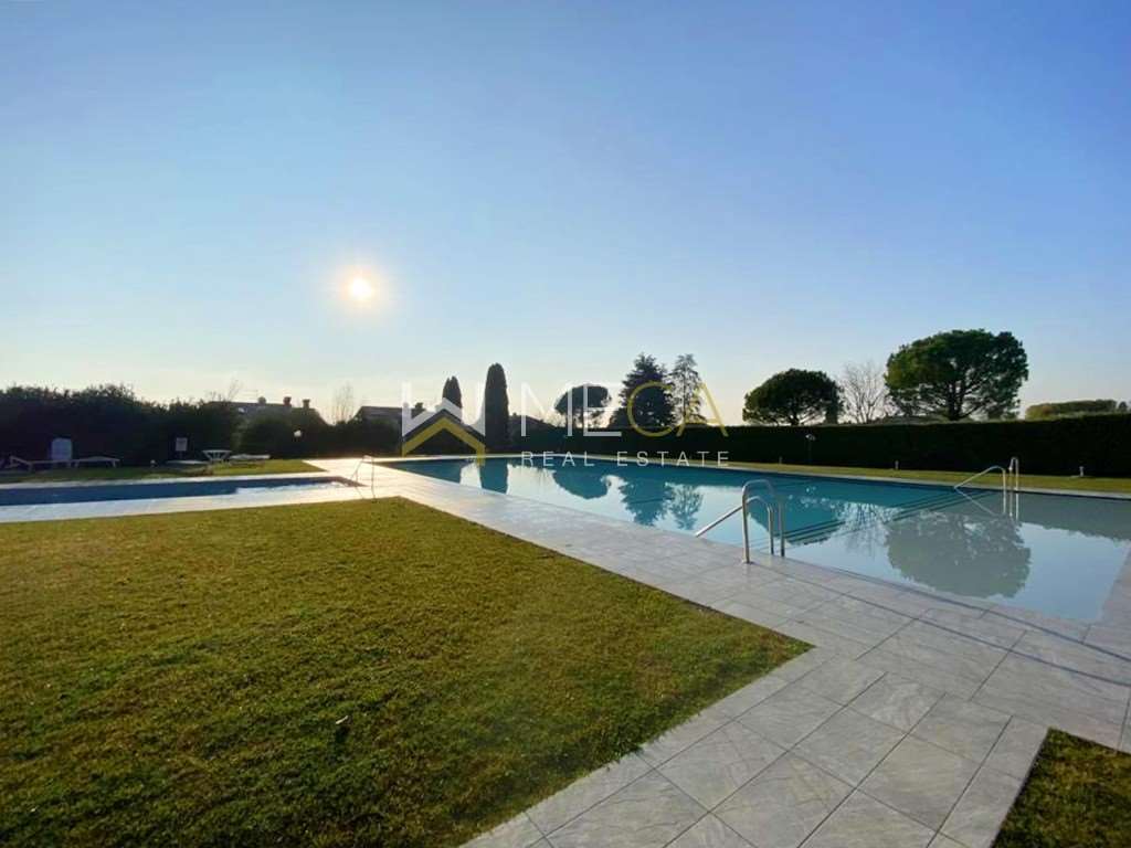 Gazzetta Immobiliare 10928260 – Riferimento Agenzia MECA0769 – Moniga del Garda, in posizione molto soleggiata e vicino al lago ed al porto, trilocale inserito in residence con piscina di dimensioni ampie e appena ristrutturata.