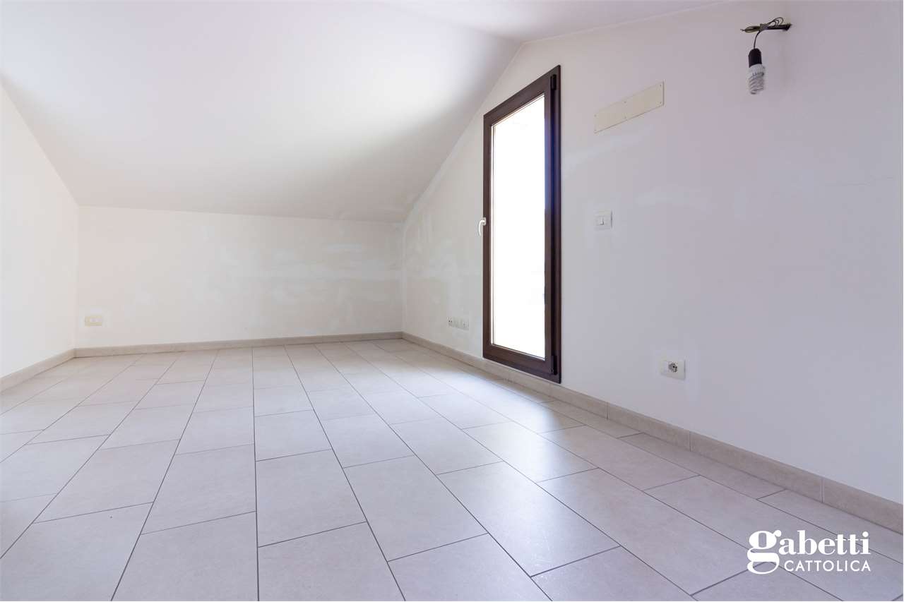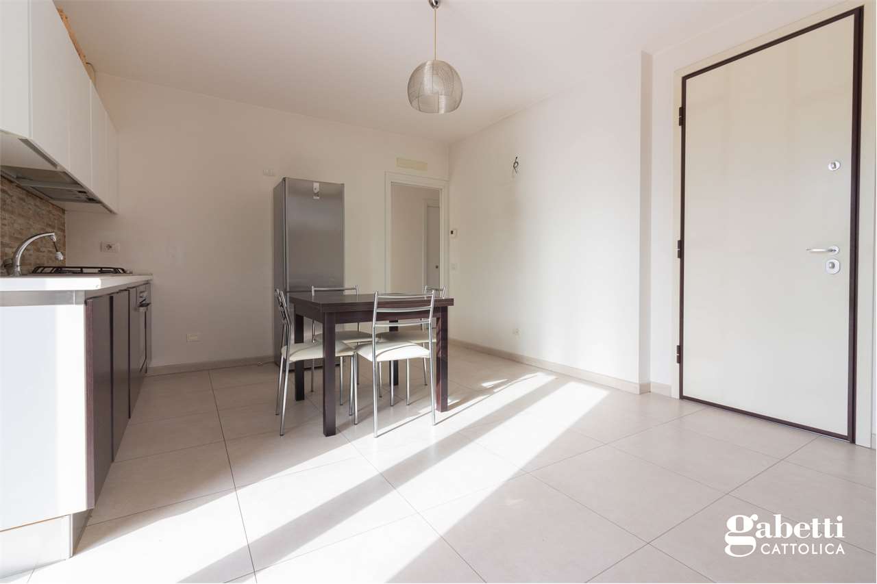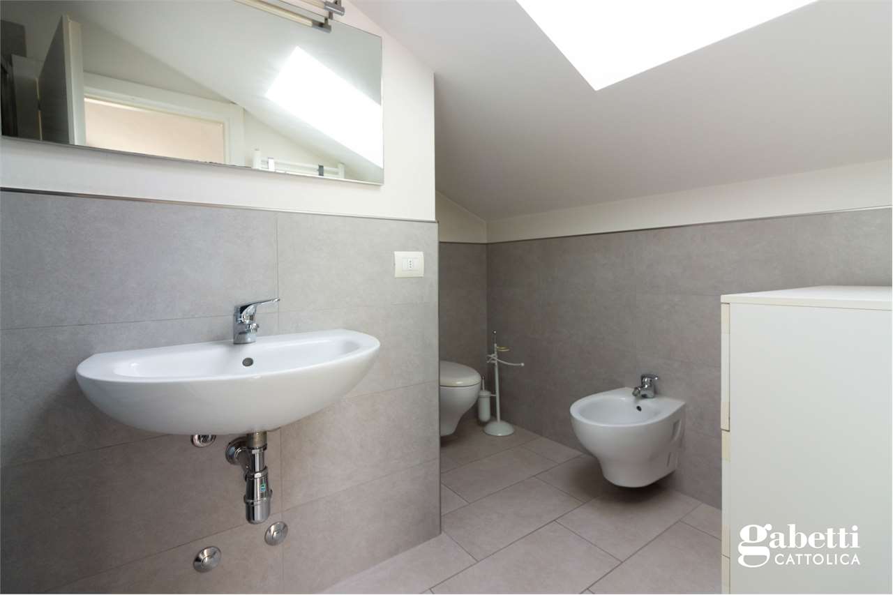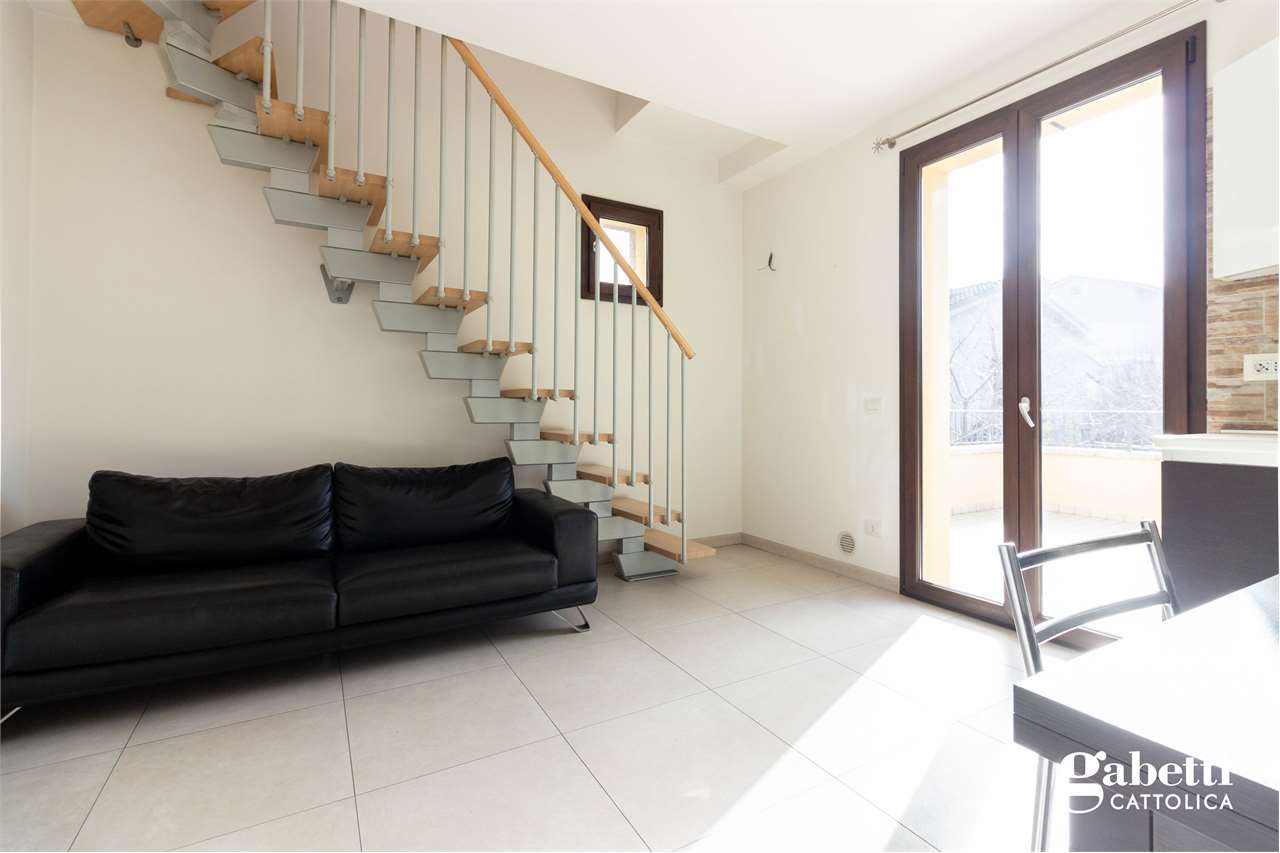 In tranquilla zona residenziale di Cattolica, proponiamo appartamento al piano primo con ingresso indipendente, disposto su due livelli.