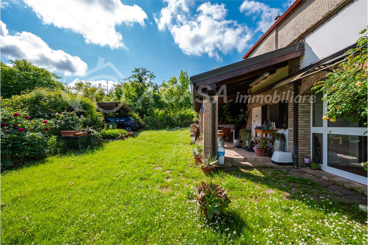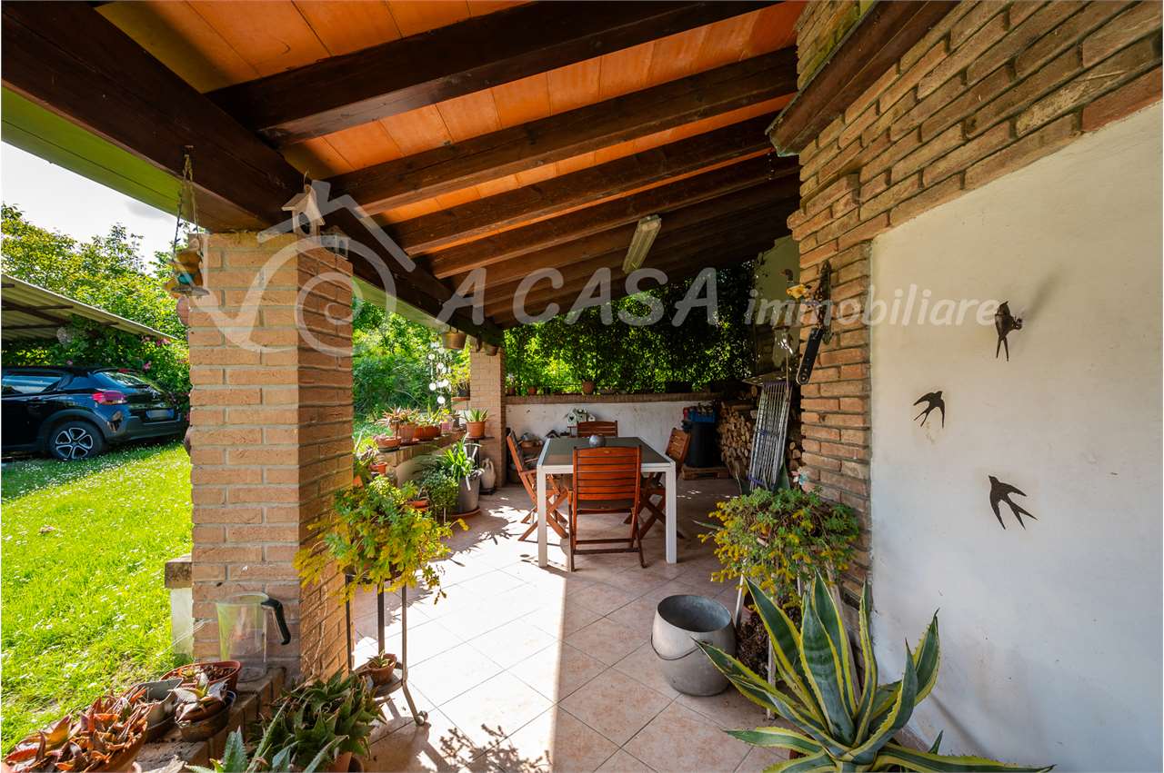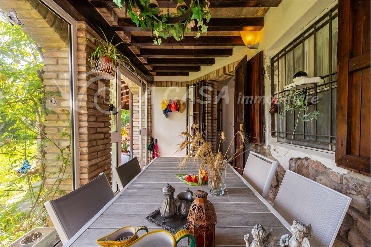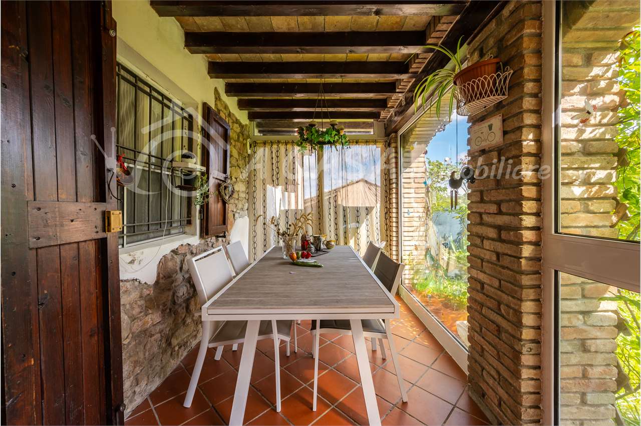 Ingresso dal giardino privato dove è affacciato un ampio portico, ingresso in ver... Vedi di più