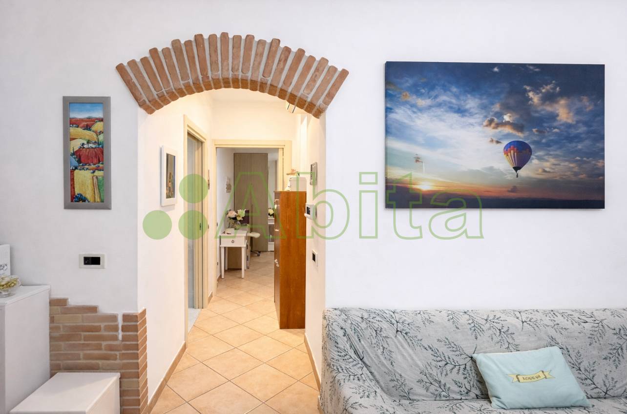 L' ingresso conduce direttamente al soggiorno con angolo cottura, ambiente accogliente e funzionale .