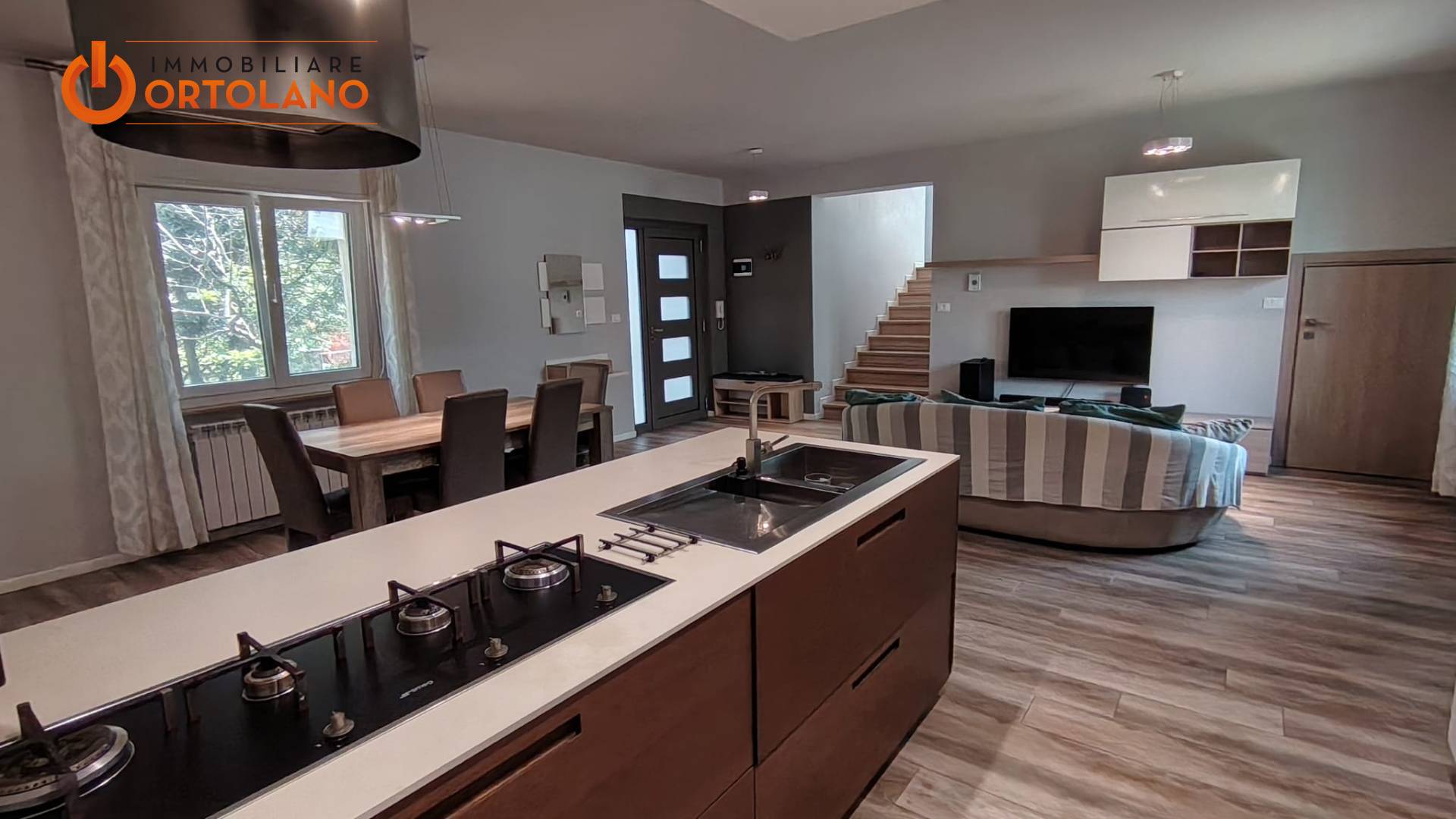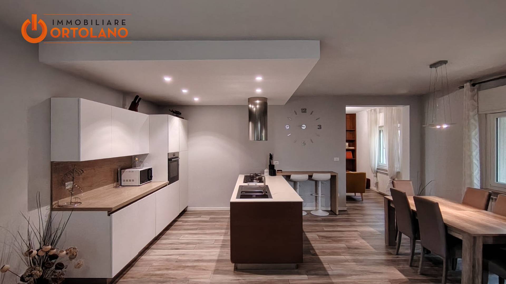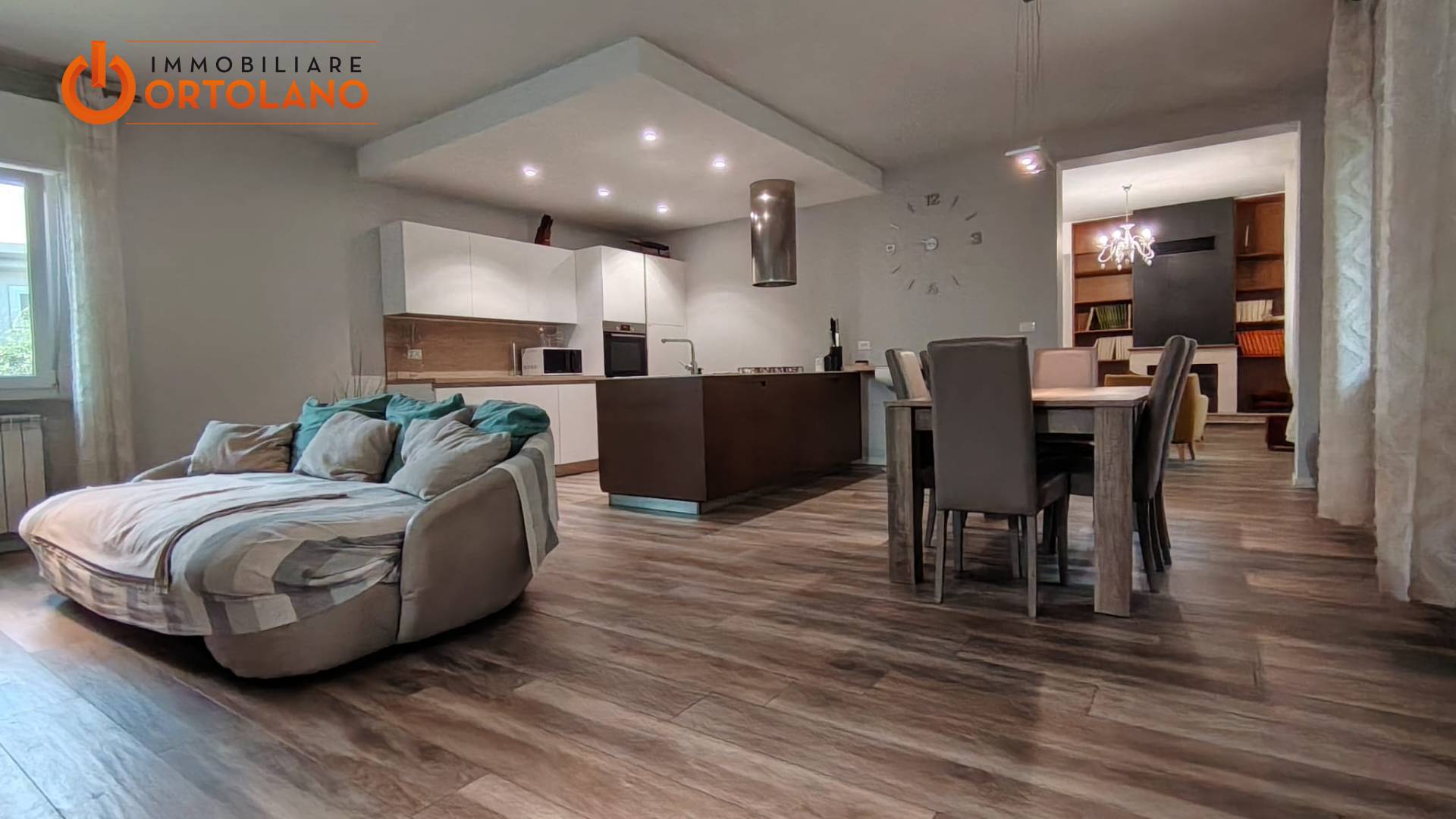 LA ZONA GIORNO CON CUCINA A ISOLA E' AFFIANCATA DA UN SALOTTINO CON CAMINO E CAMERA AL PIANO