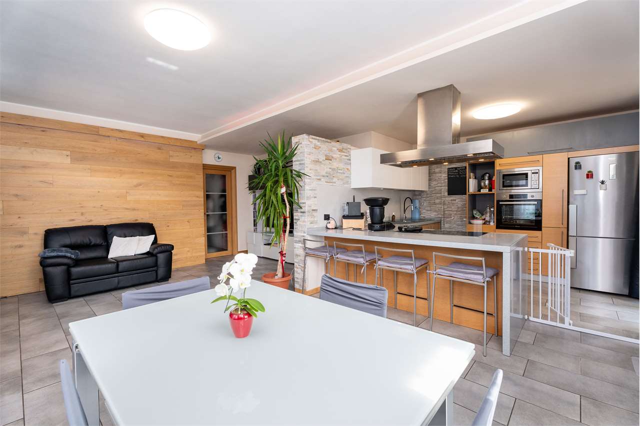 L'unità è stata completamente ristrutturata e si trova in ottime condizioni di manutenzione. E' composta da: ingresso con portoncino blindato, ampio soggiorno con stufa a legna, ampia cucina arredata con vano dispensa nascosto. Il soggiorno e la cucina sono circondati da una bellissima e soleggiata terrazza. Proseguendo si trova una comoda camera matrimoniale con armadio, seconda ampia camera con balcone, primo bagno con vasca idromassaggio, secondo bagno con zona lavanderia.