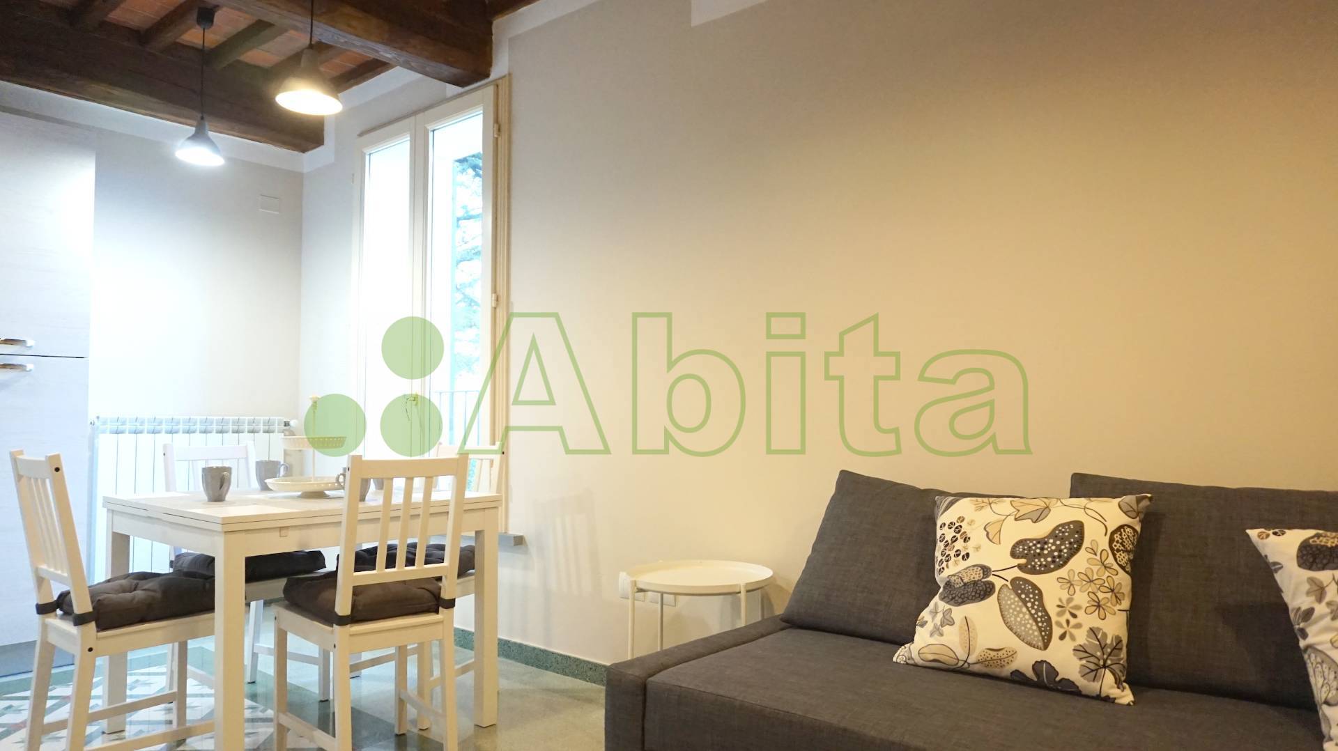 Picciorana-In zona residenziale tranquilla a pochi minuti dal centro storico appartamento all' interno di signorile palazzo ristrutturato corredato da ascensore composto da ingresso, ampio soggiorno pranzo con cucina a vista, camera, studio e bagno. Corredata da posto auto esclusivo e ampio giardino condominiale. L'appartamento presenta finiture di pregio, con pavimenti in graniglia e viene venduto arredato.
