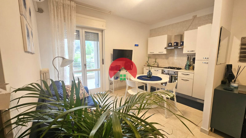 Lâimmobile si distingue per lâottima distribuzione degli spazi interni: lâingresso conduce a una luminosa zona giorno con ampio soggiorno, valorizzato da grandi vetrate che affacciano su un ampio balcone principale lato strada, dotato di tenda da sole che garantisce privacy, perfetto per creare un angolo relax. La cucina abitabile, separata dal soggiorno, è servita da un pratico bagno/lavanderia con accesso diretto al balcone.