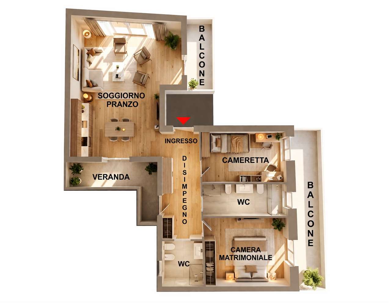 L'immobile si distingue per la doppia esposizione, garantendo un'ottima luminosità durante tutto l'arco della giornata oltre ai comodi balconi che rendono gli ambienti ancora più ariosi e vivibili.