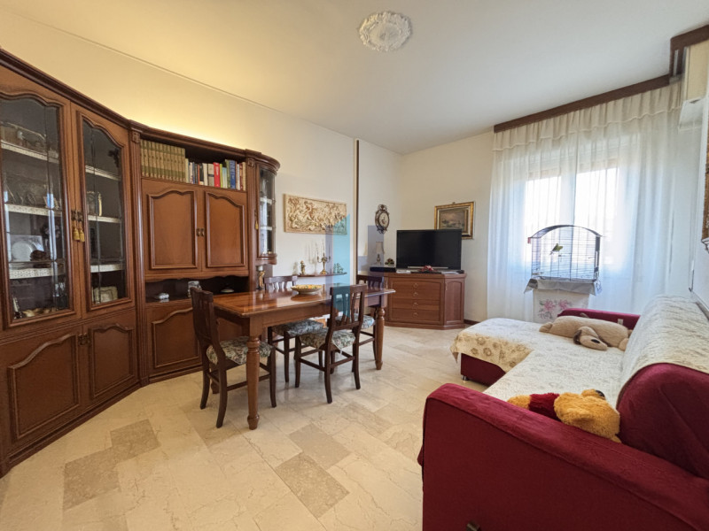 L'immobile si trova al terzo piano di un condominio dotato di ascensore. Internamente, l'appartamento si sviluppa lungo un comodo corridoio e all'ingresso, verrete accolti da un ampio e luminoso soggiorno, caratterizzato da una porta finestra che offre l'accesso diretto alla loggia garantendo un'illuminazione ottimale durante tutto il giorno. La zona giorno è completata da una cucina separata e semi-abitabile, dotata di pavimento in grès, ed anch'essa collegata alla loggia. Gli infissi interni e le porte sono in legno, mentre i serramenti esterni sono in PVC con doppio vetro, assicurando un buon isolamento termico e acustico.