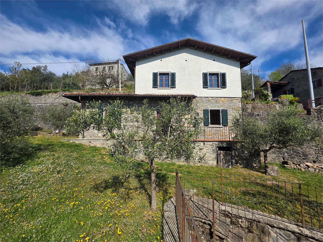 Immobile di pregio distante 30 km da Lucca. Si tratta di una antica costruzione di 330 mq utili ristrutturata con finiture di pregio; si sviluppa su 3 piani il primo dei quali prevede ampio salone di ingresso , salotto con alcuni vani di servizio al primo piano si trova la cucina con relativa ampia zona da pranzo che si affaccia sul piano sottostante grazie ad un balcone interno con relativa ringhiera in ferro battuto. Al secondo piano abbiamo la zona notte composta da 4 camere da letto con annessi servizi da sottolineare la " Suite " che oltre ad avere ampi spazi ( 60 mq oltre terrazzo esterno) presenta degli scorci caratteristici con piccola zona relax con vetrata e travicelle e mezzane a vista che consente una visuale spettacolare sulla valle. Il terreno circostante della casa accompagna lo sviluppo della stessa consentendo di avere giardino al piano terra e anche ampio lastricato al piano primo in corrispondenza sia della cucina sia della zona pranzo. Possibilit? di realizzare la piscina interrata.