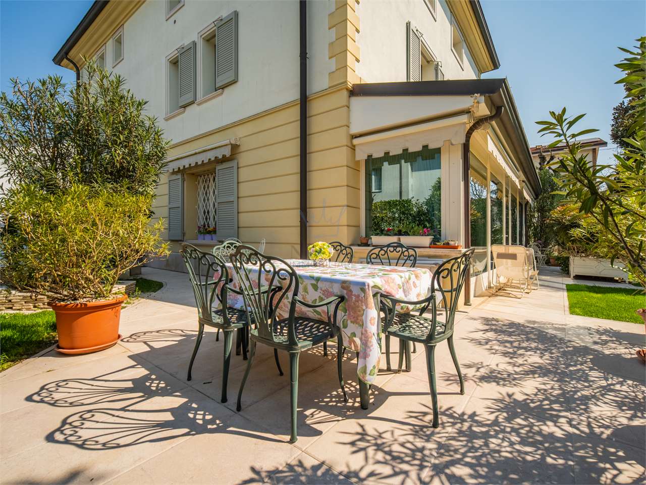 La proprietà si apre su un suggestivo affaccio: un giardino all'italiana, un quadro naturale di rara armonia nella privacy, che dona un senso di quiete . Un dialogo continuo tra interno ed esterno, tra il passato ed il presente che diventa un tutt'uno con l'abitare.