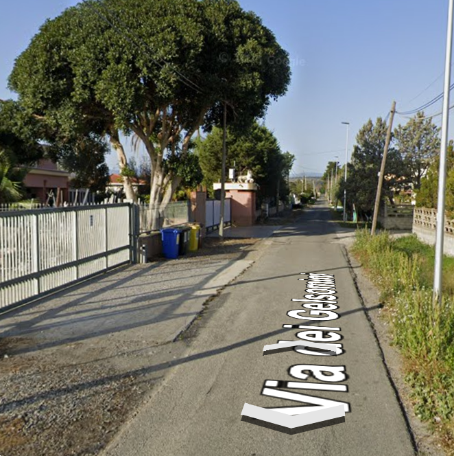 Abitazione indipendente su due livelli in via dei Gelsomini, con ambienti ampi e una corte privata che circonda l'immobile. La distribuzione interna è regolare e comprende zona giorno al piano terra e camere al piano superiore, con balconi e porticato di pertinenza.