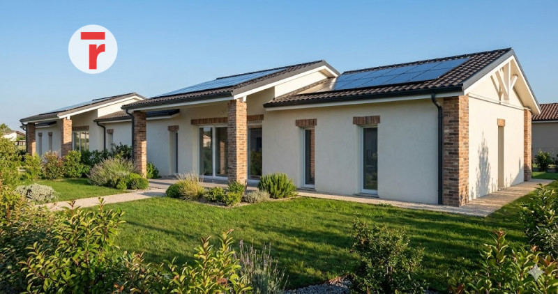 Viene finita in classe A con impianto di riscaldamento a pavimento, impianto fotovoltaico da 5 kw e clima.