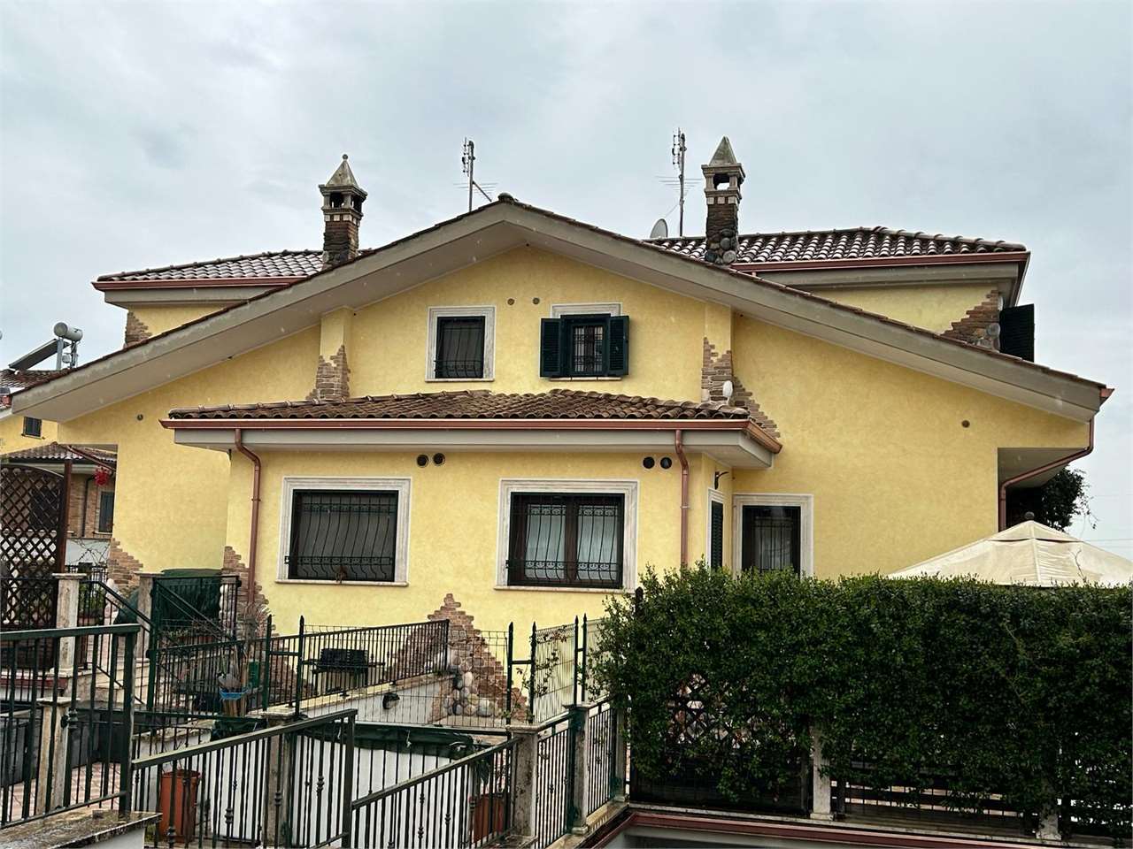 Villa structured as follows: basement floor with garage, cellar, WC, storage room, hallway and staircase; ground floor, residential, consisting of living/sleeping area, kitchenette, bathroom, staircase and 3 porches; first floor, non-residential, comprising three attics , hallway, staircase and terrace at the rear; exclusive courtyard on the ground floor.