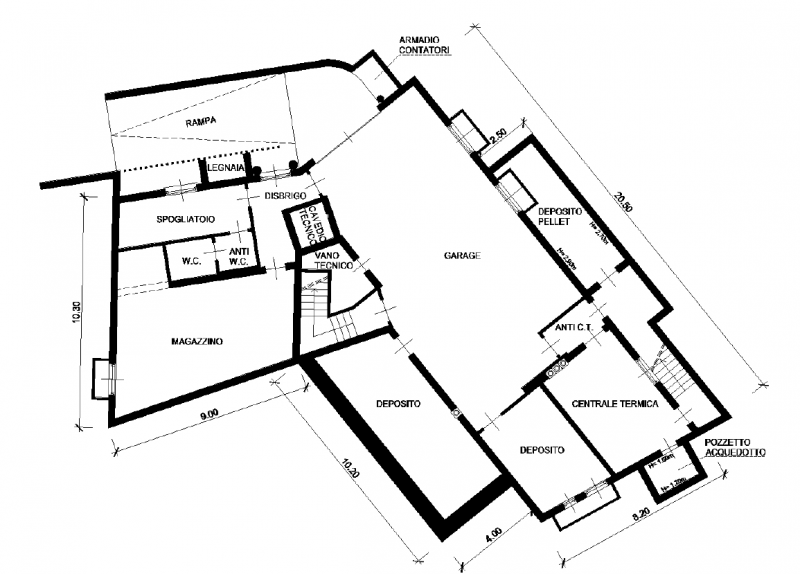 Al piano interrato si trovano un garage di generose dimensioni, con possibilità di parcheggiare fino a tre auto, e un locale tecnico dedicato alla centrale termica.
