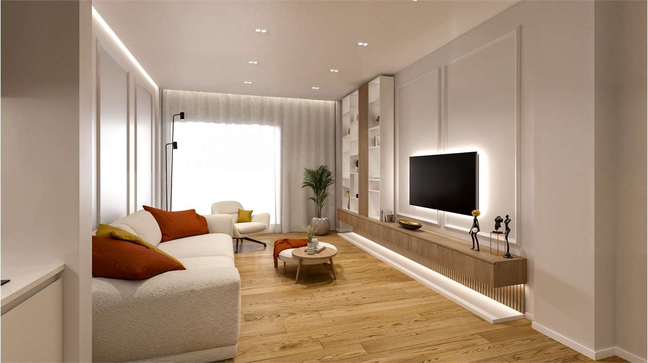 L'ingresso si apre su un soggiorno a vista, un ambiente fluido e luminoso che integra perfettamente un moderno angolo cottura, uno spazio intimo e ideale per momenti di relax o per accogliere gli amici in un'atmosfera raffinata.