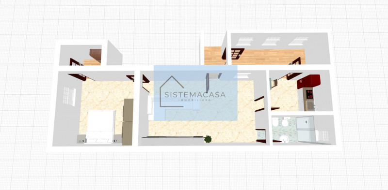 - Soggiorno con predisposizione attacchi per angolo cottura e spazio per tavolo da pranzo e divano