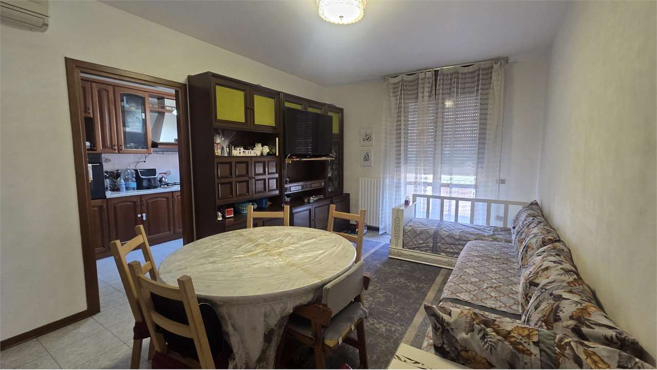 L'appartamento si trova al secondo piano di tre senza ascensore ed è cosi composto: ingresso, tinello con balcone, cucina, bagno, camera matrimoniale e camera tre quarti.