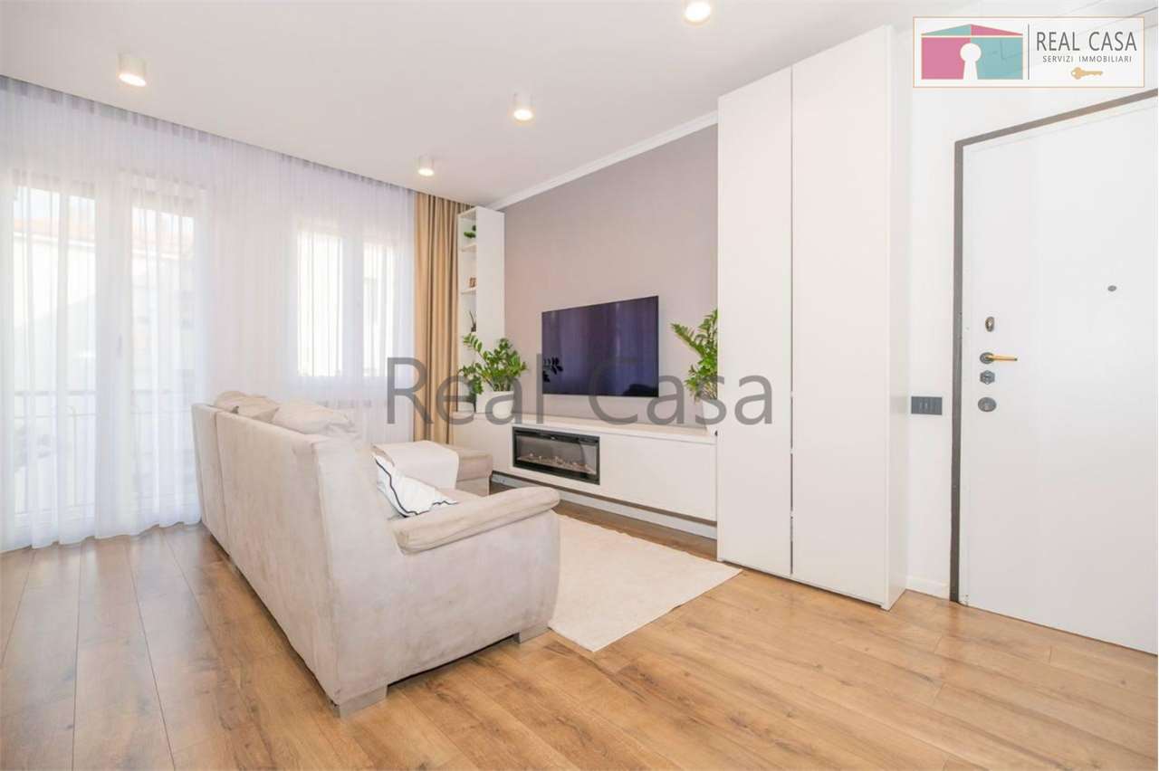 L'immobile, ubicato al secondo piano di un edificio con ascensore, si compone di un ingresso, un ampio soggiorno con cucina a vista, un salotto dotato di camino, due camere da letto e due bagni padronali. Completano la proprietà un ripostiglio/lavanderia e un'autorimessa al piano terra. L'immobile sarà disponibile per la locazione a partire da giugno 2026.