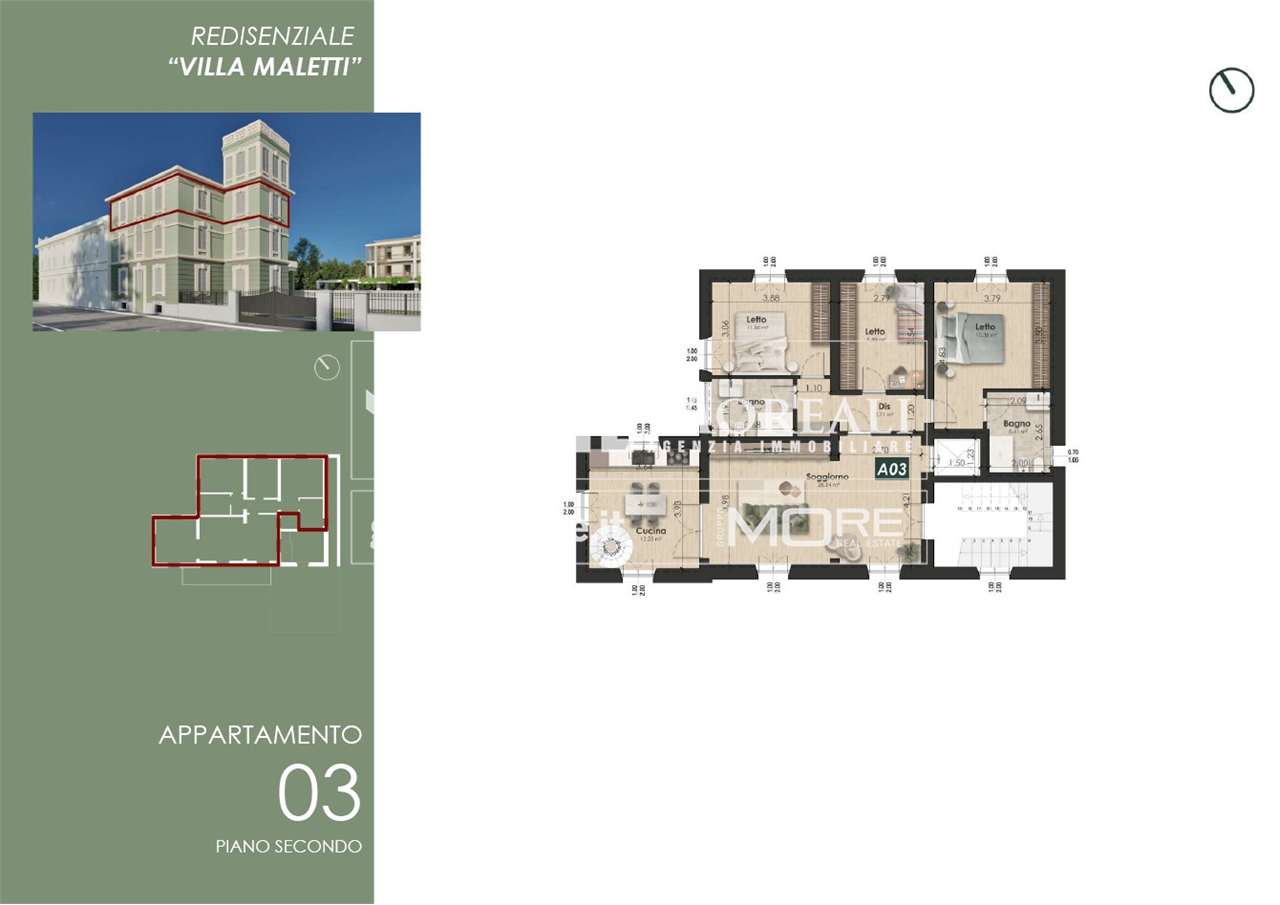 MO860E-VM3. Nostra esclusiva, Casinalbo, Borgo San Luigi - Ex Salumificio Maletti, in angolo verde comodo a tutti i servizi prossima realizzazione di comparto residenziale (Classe Energetica A4 - NZEB) composto da nr. 9 palazzine e due ville indipendenti. All'interno della storica Villa Maletti, (composta da sole tre unità abitative) in fase di integrale riqualificazione vendesi app.to di 160 mq. comm. ubicato al piano secondo e ultimo con ascensore.