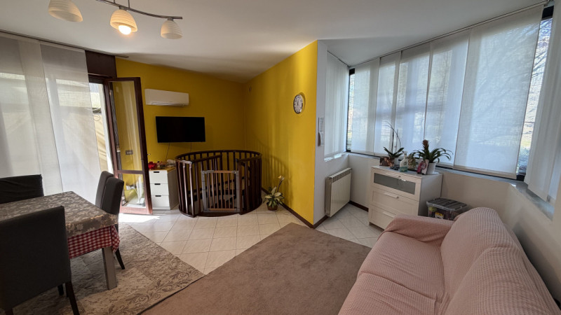 In palazzina di poche unità abitative e di recente costruzione, appartamento disposto su 2 livelli composto da soggiorno con angolo cottura, camera matrimoniale, ripostiglio e bagno. Al piano superiore ulteriore camera locale ripostiglio-guardaroba e bagno con vasca.
