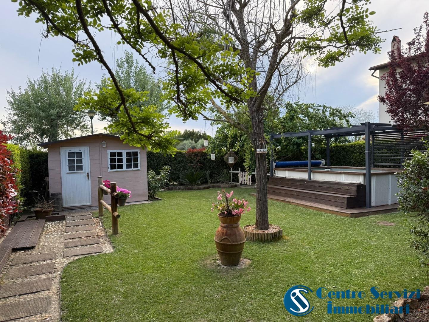 Dalla cucina si accede al secondo resede, pi? riservato, dove troviamo una pratica zona lavanderia coperta e una comoda casetta in PVC/resina, ideale come ripostiglio senza necessit? di manutenzione.