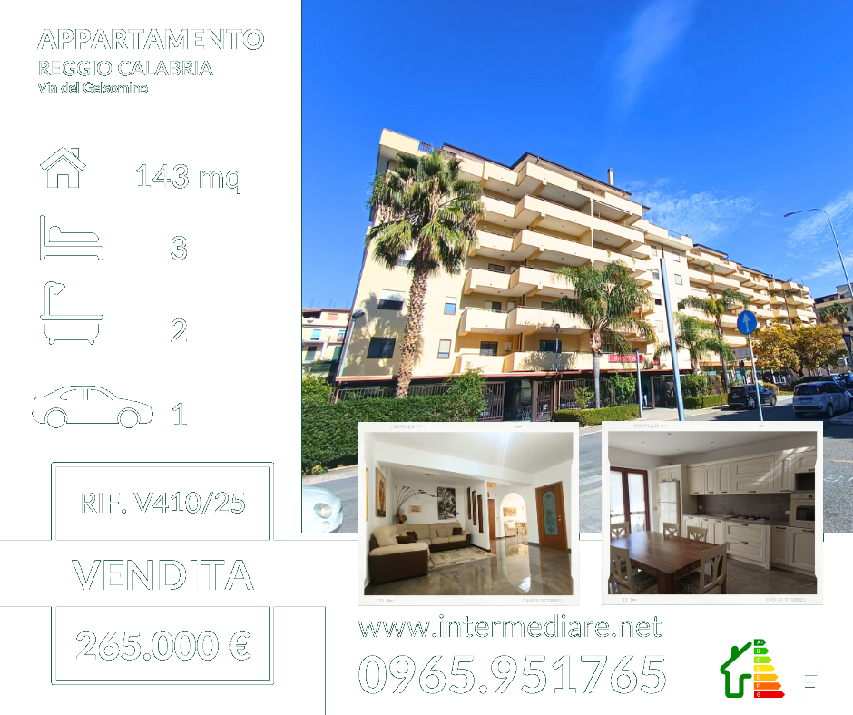 Reggio Calabria, in via Sbarre Centrali angolo via Gebbione, all'interno del condominio "La Giada", proponiamo in vendita appartamento di 130 mq sito al 1° piano da poco ristrutturato con Ecobonus 110, pertanto le facciate sono state da poco rifatte con cappotto termico.