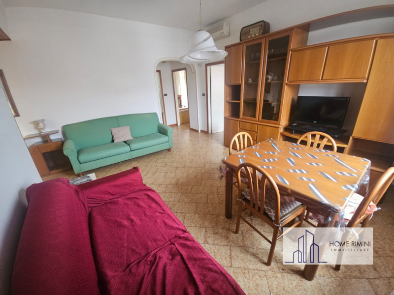 Ingresso Ampia sala luminosa Cucina abitabile separata con accesso al balcone Tre camere da letto (2 matrimoniali, 1 doppia) Due bagni (da rimodernare) Garage privato 40mq Giardino condominiale La zona living ? spaziosa e molto luminosa grazie alle grandi finestre. La cucina abitabile, completamente arredata, ha accesso diretto al balcone, perfetto per pranzi e momenti di relax all'aperto. Le tre camere offrono metrature generose e massima privacy, rendendo l'appartamento perfetto per nuclei familiari numerosi o per chi desidera ambienti comodi e ben distribuiti. Dotazioni: -Riscaldamento autonomo - Aria condizionata - Spese condominiali contenute (circa ?60/mese) - Garage di propriet? - Giardino condominiale La posizione strategica, vicino a tutti i principali servizi (supermercati, scuole, mezzi pubblici) e a pochi passi dal mare di Rimini, rende questa soluzione particolarmente interessante sia come abitazione principale sia come casa vacanze.