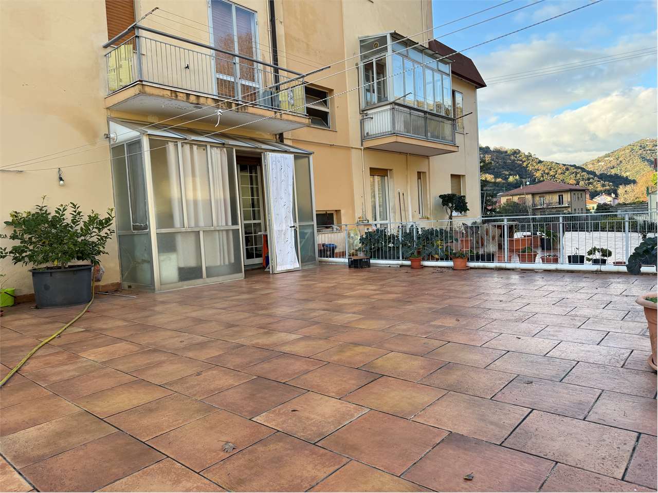 Sito al piano primo di piccola palazzina senza ascensore e con basse spese di condominio, l'appartamento è così composto: ampio salone doppio (da cui si puó ricavare una seconda camera) con balcone, camera matrimoniale, bagno finestrato e con box doccia, cucina abitabile, veranda e grande terrazza di quasi 100 mq.