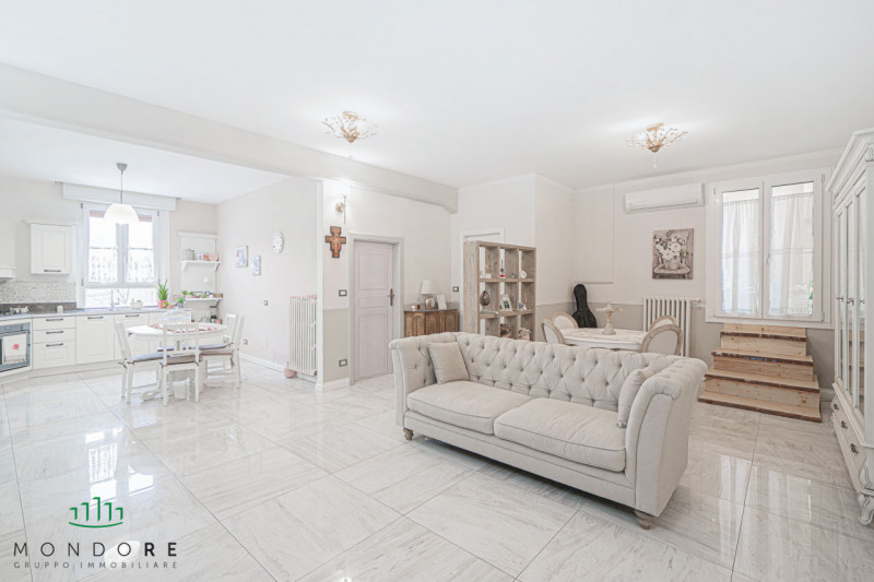 L'appartamento offre inoltre la rara opportunità del collegamento diretto col sottotetto di proprietà tramite scala interna (con eventuale possibilità di realizzare un terrazzo ad asola) e risulta inoltre idoneo per il frazionamento in due unità abitative indipendenti (progetti disponibili in ufficio).Le finiture interne sono di buona qualità : pavimenti in marmo nella zona giorno e notte e ceramica nei bagni, infissi in PVC doppio vetro basso emissivo di recente installazione, porta blindata, radiatori e termoarredi in acciaio, riscaldamento autonomo con caldaia a condensazione sostituita nel 2018 e impianto di climatizzazione quadri split.