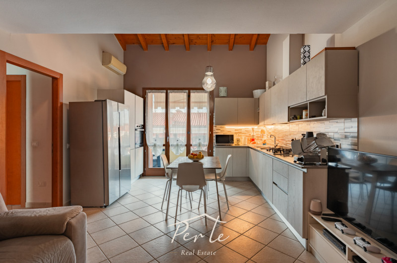 Lâingresso accompagna verso una spaziosa cucina abitabile, ambiente centrale della casa, perfetto per vivere la quotidianità . La zona notte è composta da una ampia camera matrimoniale e da una comoda cameretta, oltre al bagno.