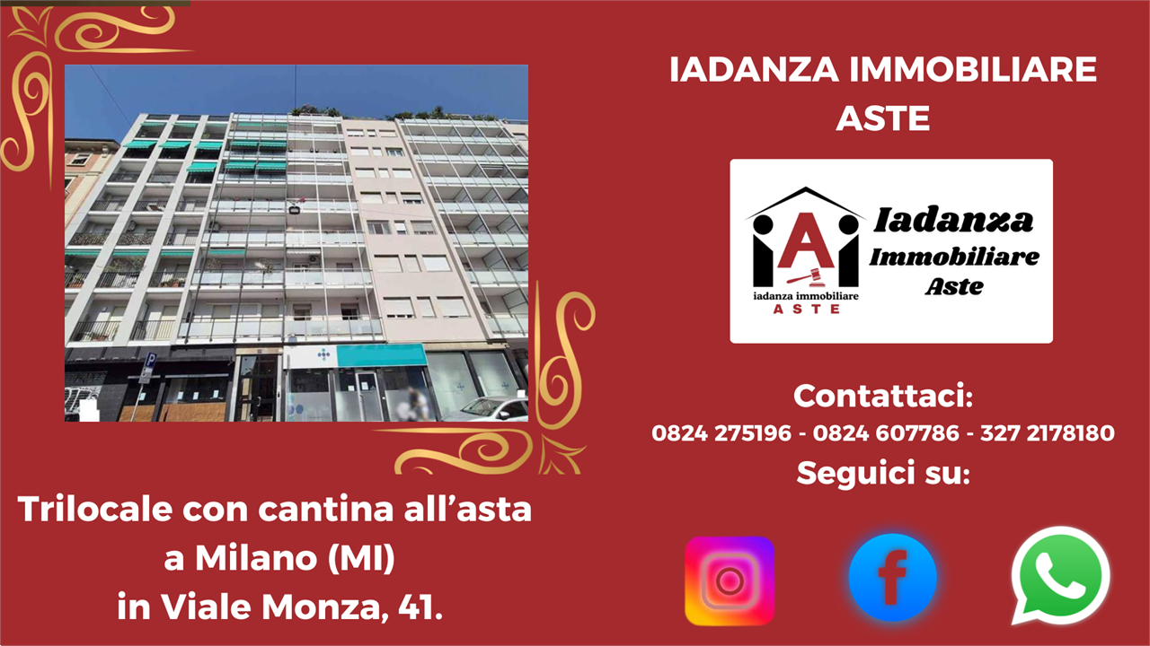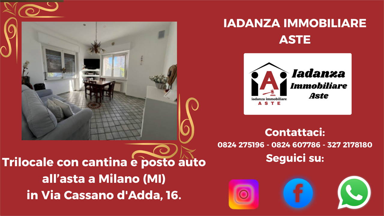 Trilocale con cantina e posto auto all'asta a Milano (MI) in Via Cassano D'Adda, 16.