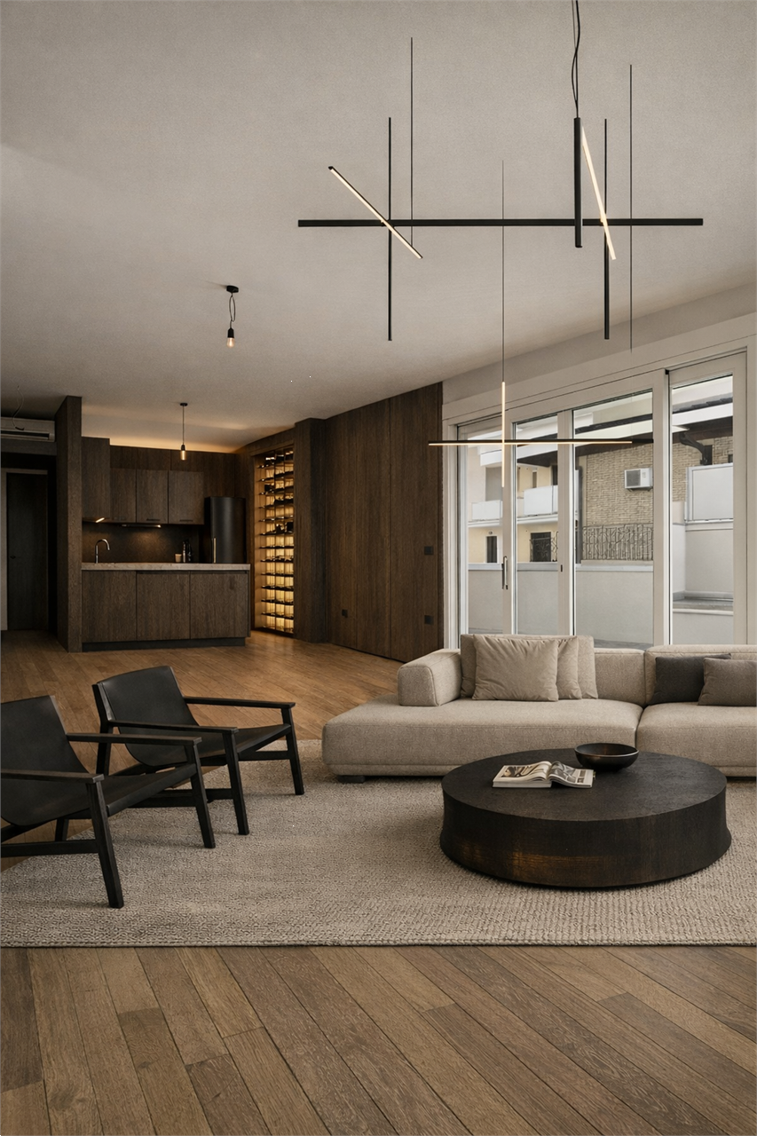 Zona Living: Accogliente soggiorno con angolo cottura a vista.