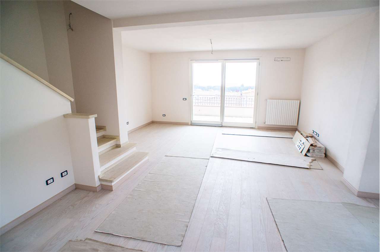 Proponiamo in vendita splendido attico di recente costruzione, situato al secondo ed ultimo piano di una palazzina moderna e curata. L'abitazione, di circa 130 mq, ? perfettamente distribuita: ingresso su luminosa zona giorno con cucina a vista elegantemente separata da un'elegante struttura su misura, tre camere da letto e due bagni.