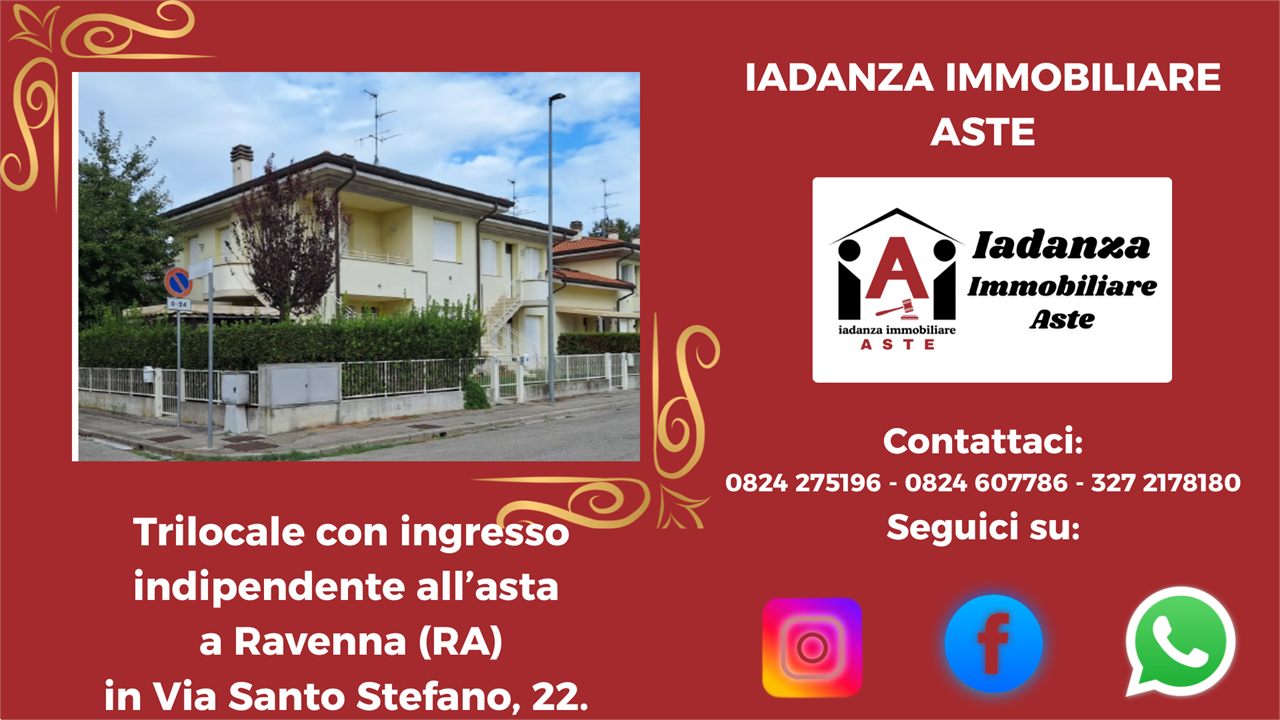 Trilocale con ingresso indipendente, garage, cantina e corte privata all'asta a Ravenna in Via Santo Stefano, 22.