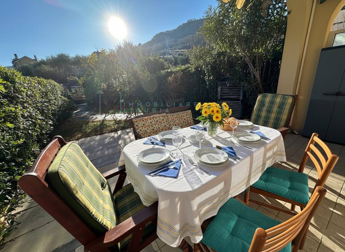Atmosfera Romantica: Il porticato coperto e l'ampio giardino privato sono la cornice perfetta per indimenticabili cene estive a lume di candela sotto il cielo della Liguria.